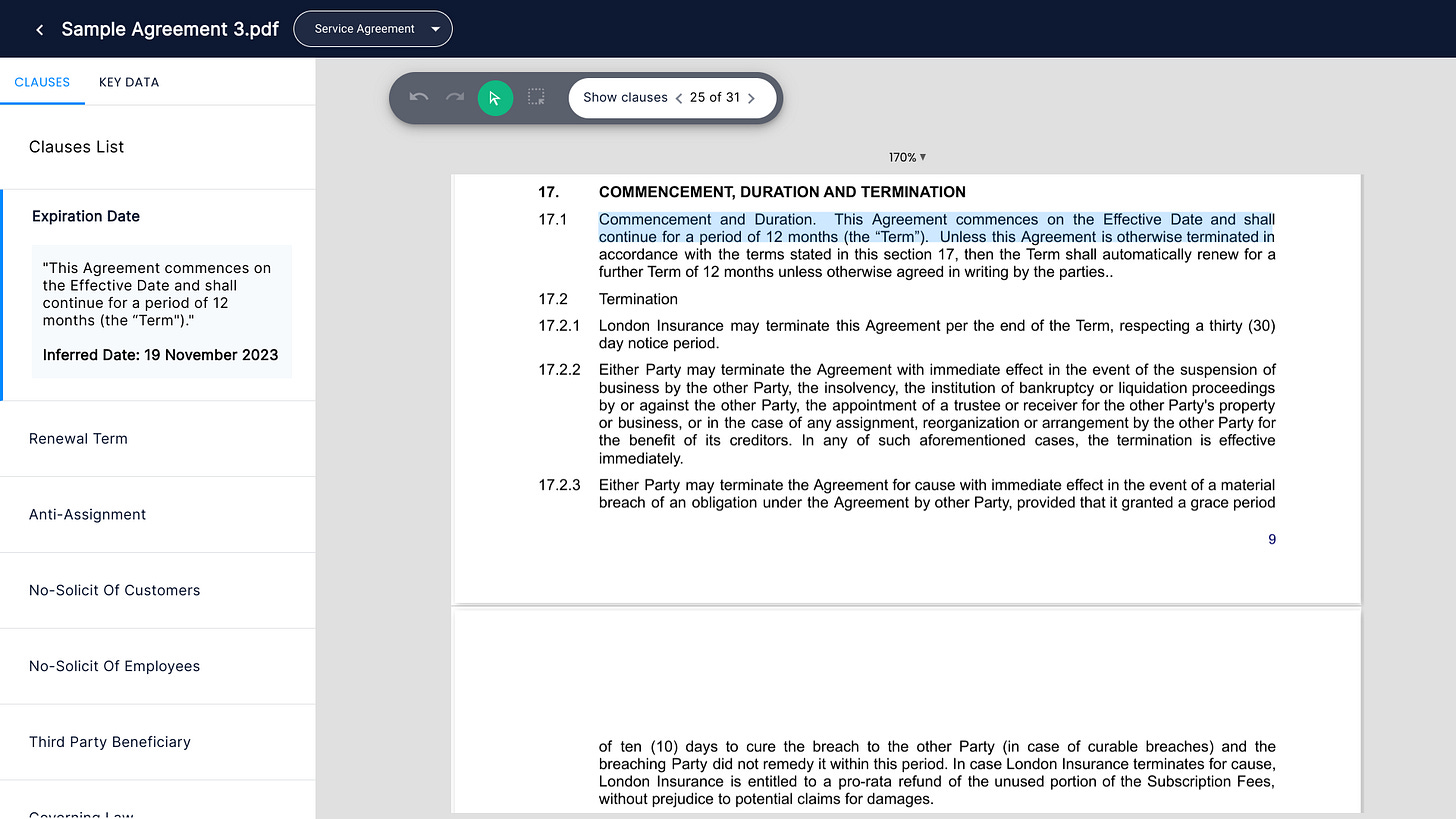 Data Point Extraction: over 40 Types of Clauses Automatically Recognised.